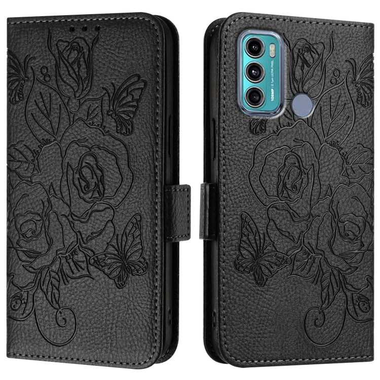 Funda para Motorola Moto G60 y G40 Fusion Cuero Antirrobo RFID con Relieve (Negro)