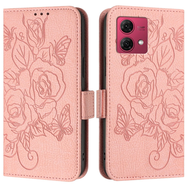 Funda de Cuero Antirrobo con RFID para Motorola Moto G84 5G en Relieve (Rosa)