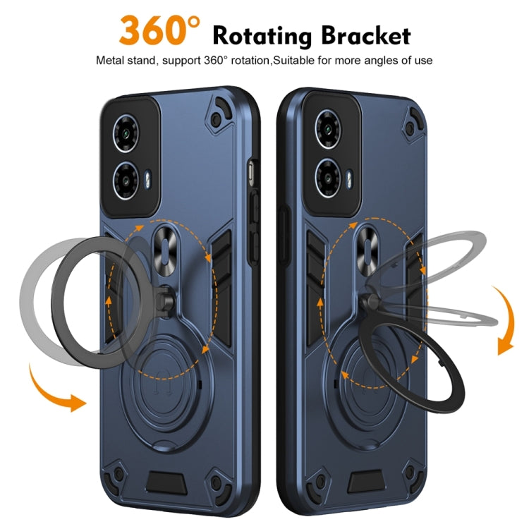 Anillo de Metal Soporte Giratorio 360° para Motorola Moto G34 Estuche Híbrido TPU PC (Azul Marino)