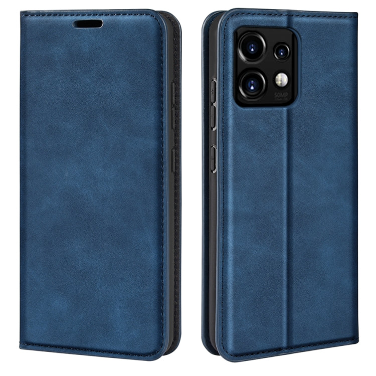 Estuche para Motorola Moto X40 Pro de Cuero con Succión Magnética Piel Retro (Azul Oscuro)