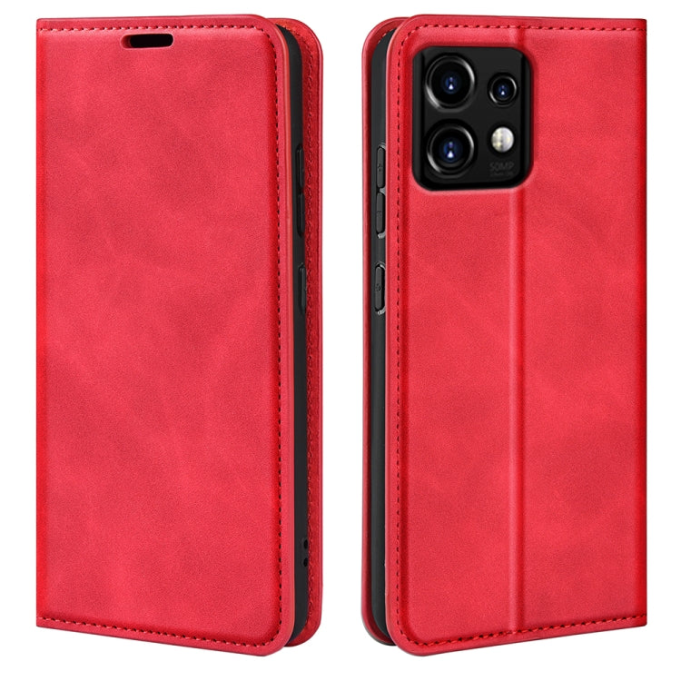Funda de Teléfono Motorola Moto X40 Pro Cuero con Succión Magnética Piel Retro (Rojo)