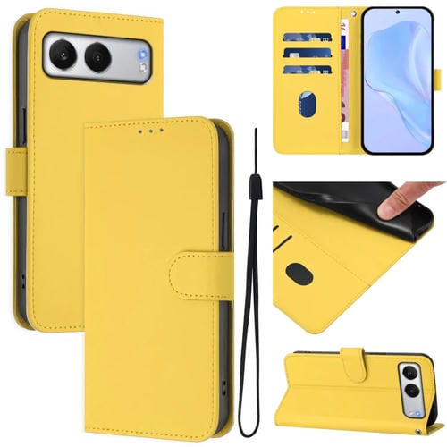Funda de Piel Textura Liso para OnePlus Nord 4 5G con Cordón (Amarillo Limón)