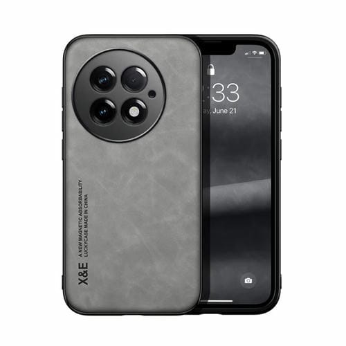 Funda de Cuero para OnePlus 13 con Parte Trasera Magnética y Tacto Agradable (Gris Oscuro)