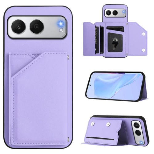 Funda para OnePlus Nord 4 con 4 Ranuras para Tarjetas y Correa para Muñeca (Morado)