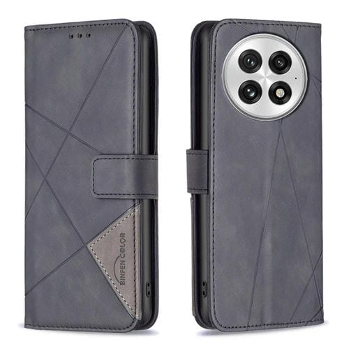 Funda de Cuero con Textura de Rombos y Hebilla Magnética para OnePlus 13 Bf05 (Negro)