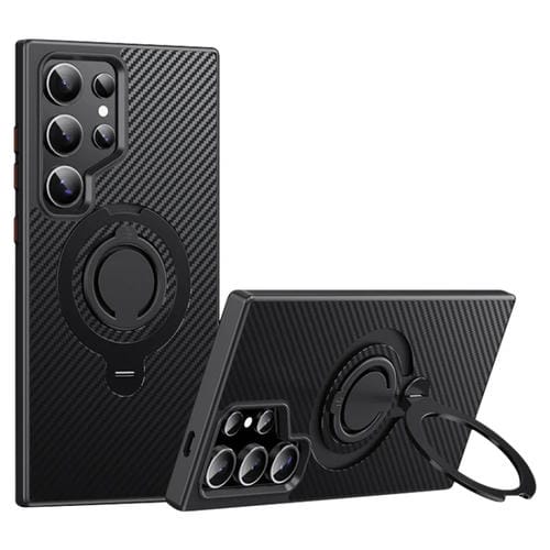 Funda para Teléfono Samsung Galaxy S24 Ultra 5G Soporte Giratorio 360 Fibra Carbono (Negro)