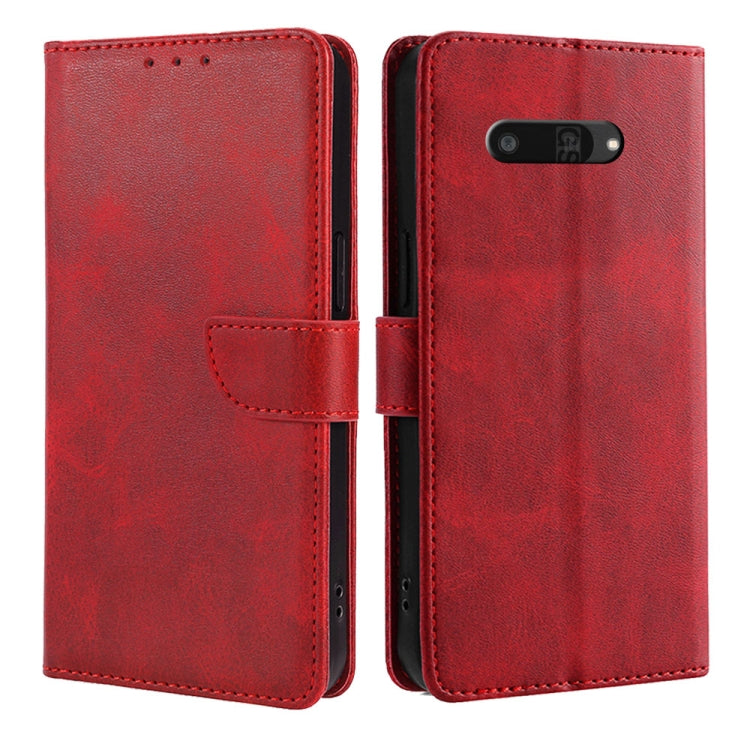 Funda de Cuero Kyocera Android One S10 Becerro Textura Hebilla Flip para Teléfono (Rojo)