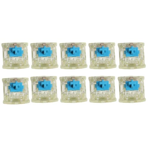 El Conjunto de 10 Piezas de interruptores Cherry MX RGB con eje transparente y diseño triangular está diseñado para su uso en Teclados mecánicos compatibles con iluminación RGB. Estos interruptores ofrecen una experiencia Táctil precisa y duradera, con una fuerza de activación y recorrido específicos para cada variante de eje. El modelo presentado corresponde al eje verde, caracterizado por su respuesta mecánica Táctil y un recorrido de activación de 2,2 mm con una fuerza de disparo de 50 cN. Su diseño admite la integración con sistemas de iluminación RGB mediante cuentas de lámpara SMD pequeñas, sin Soporte para lámparas enchufables o Teclados con Conexión en caliente de manga. Este Producto es ideal para usuarios que requieren una personalización avanzada y un rendimiento fiable en Teclados mecánicos con retroiluminación.