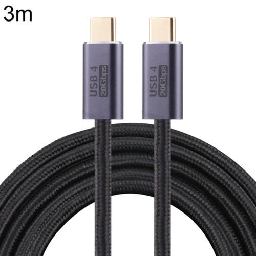 Cable de datos USB 4.0 Tipo-C macho a USB-C trenzado 20Gbps 3 metros (Negro)