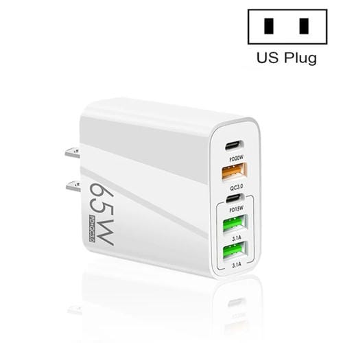 Cargador Multi Puerto 65W Dual PD Type-C + 3 USB Para Teléfono y Tablet PC (Blanco)