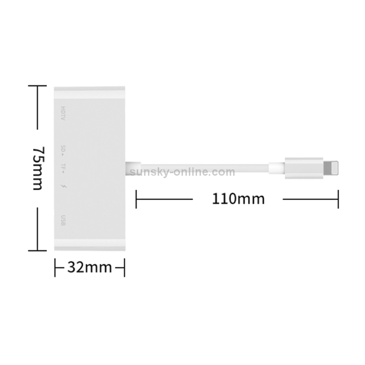 Adaptador 5 en 1 8 Pines a HDMI + SD + TF + USB + Carga 8 Pines Convertidor Video HD