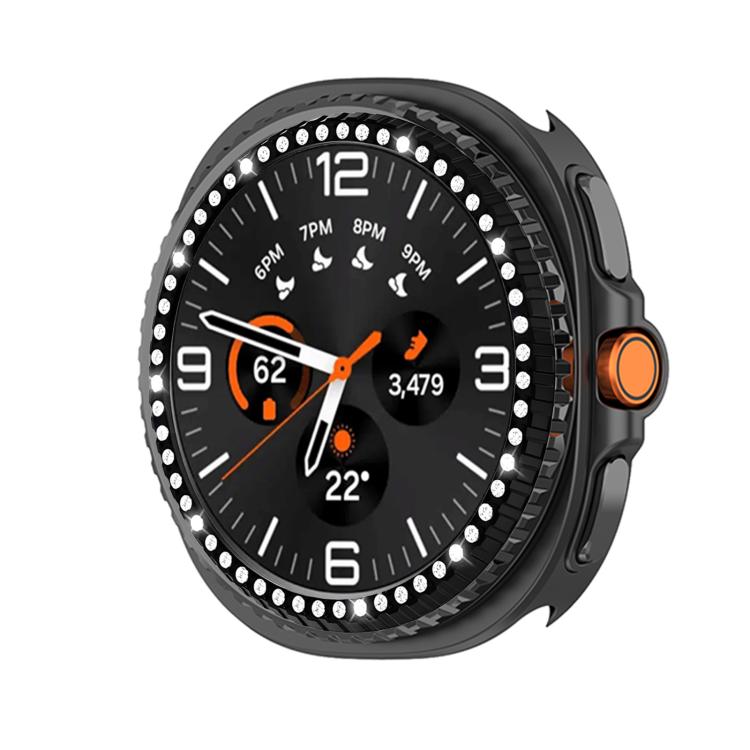 Anillo protector de metal con diamantes de una sola fila para Samsung Galaxy Watch8 Classic de 46 mm (negro original)
