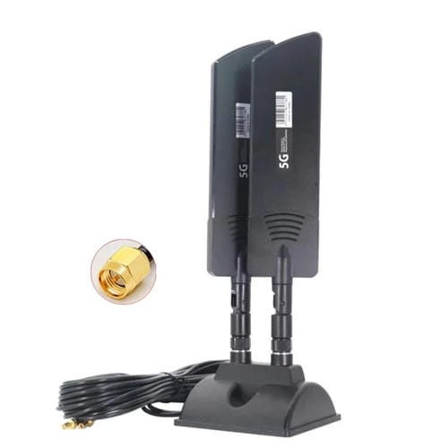 - 1x Antena Externa para Enrutador 5G 42 dBi Amplificador Cobertura Señal WiFi Largo Alcance Exteriores SMA Macho (Negro)