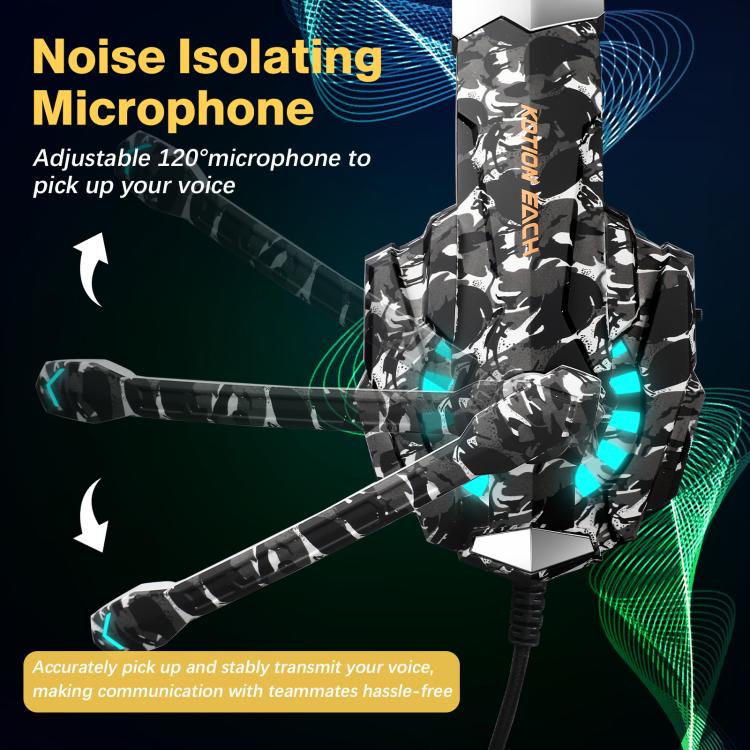 Auriculares supraurales para juegos KOTION EACH G9000 Pro con micrófono, longitud del cable: aprox. 2,1 m (gris camuflaje)