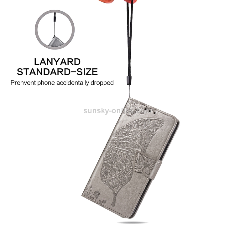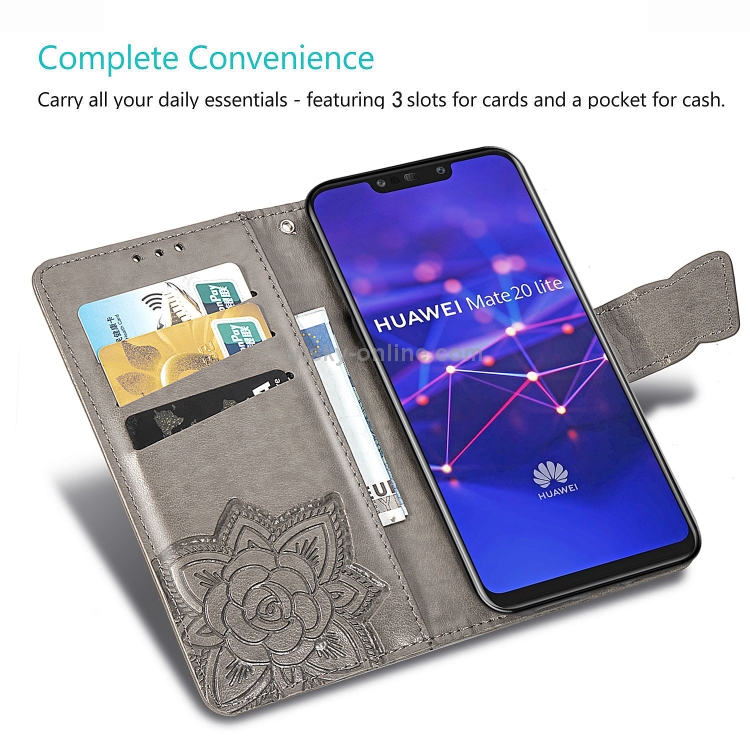 Funda de Cuero Butterfly Love Flowers para Huawei Mate 20 Lite con Tapa Horizontal, Soporte y Billetera (Gris)