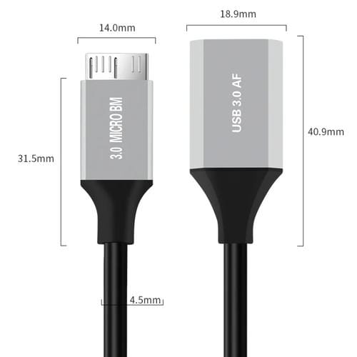 • 1x Cable Adaptador de Disco Duro Móvil USB 3.0 Hembra a Micro B 0,2 Metros