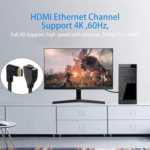 Cable de extensión fijo HDMI macho a hembra, versión 2.0, 4K 60 Hz, con orificios para tornillos, longitud: 0,2 m (codo superior)
