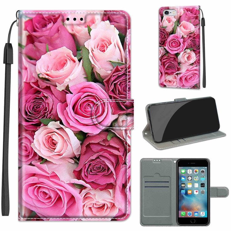Funda de Cuero PU con Cierre Magnético y Soporte para iPhone 6S / 6 (Green Leaf Pink Rose)
