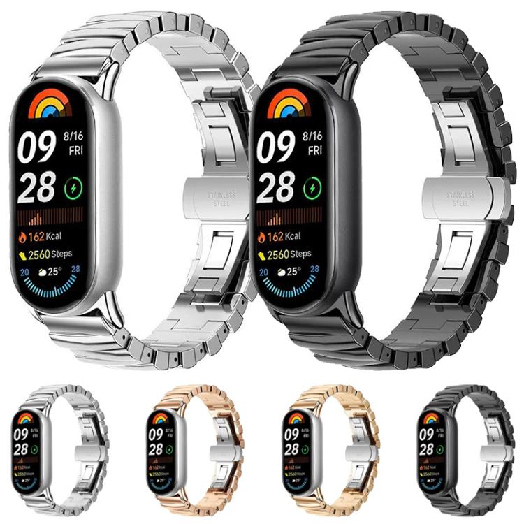 Correa de acero inoxidable con hebilla de mariposa irregular para Xiaomi Smart Band 9/8 (negra)