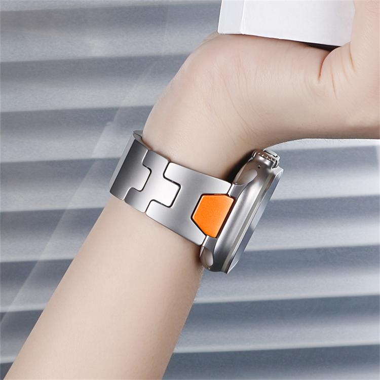 Correa de acero inoxidable con hebilla de mariposa y liberación rápida tipo H para Apple Watch de 44 mm, 45 mm, 46 mm y 49 mm (titanio)