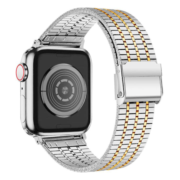 Correa de acero inoxidable con hebilla de siete cuentas para Apple Watch de 42, 44, 45, 46 y 49 mm (plata y dorada)