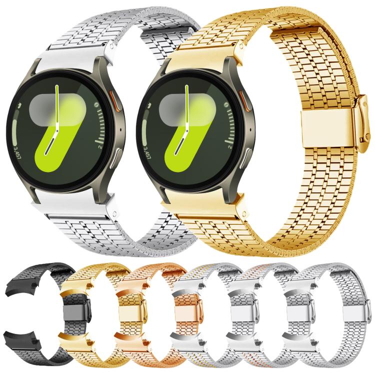 Correa de acero inoxidable con hebilla de siete cuentas para Samsung Galaxy Watch 7/6/5/4 (plata y dorada)