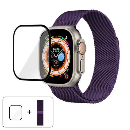 Correa de acero inoxidable milanesa con película curva 3D para Apple Watch Ultra 2/1 de 49 mm (morado)