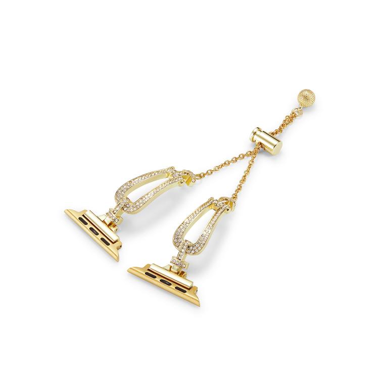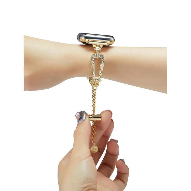 Correa de aleación de zinc con diamantes en forma de U para Apple Watch de 46 mm, 49 mm, 45 mm y 44 mm (dorada)