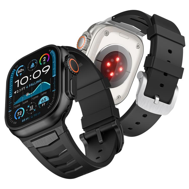 Correa de caucho fluorado con hebilla de acero inoxidable para Apple Watch Ultra/Ultra 2 de 49 mm (negro)