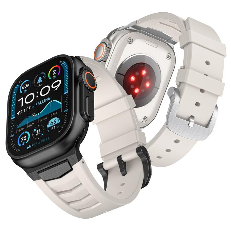 Correa de caucho fluorado con hebilla de acero inoxidable para Apple Watch Ultra/Ultra 2 de 49 mm (negro Starlight)