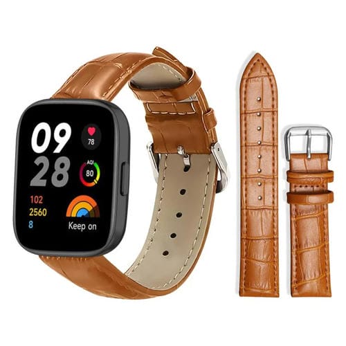 Correa de cuero con hebilla de pasador y textura de bambú xDfind para Redmi Watch 3 de 20 mm (marrón claro)