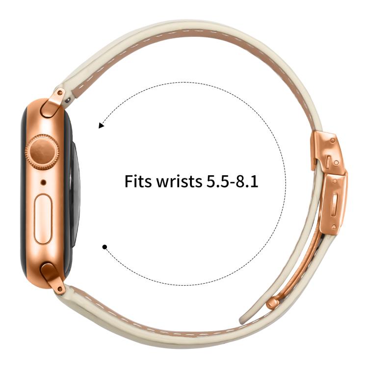 Correa de cuero con hebilla de tortuga en oro rosa y textura de lichi para Apple Watch de 46 mm, 49 mm, 45 mm y 44 mm (blanco cremoso).