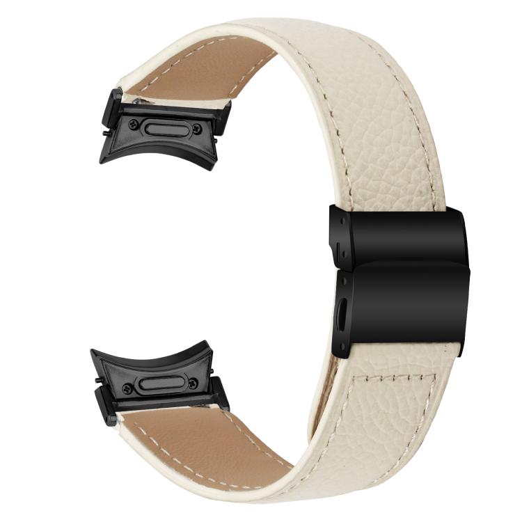 Correa de cuero con hebilla trasera de tortuga negra y textura de lichi de liberación rápida para Samsung Galaxy Watch 7 de 40/44 mm (blanco cremoso)
