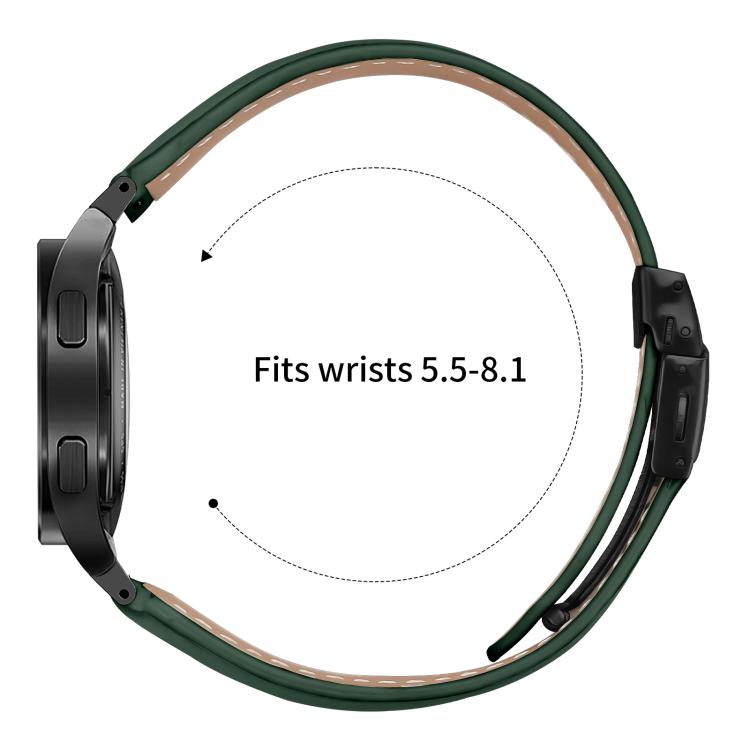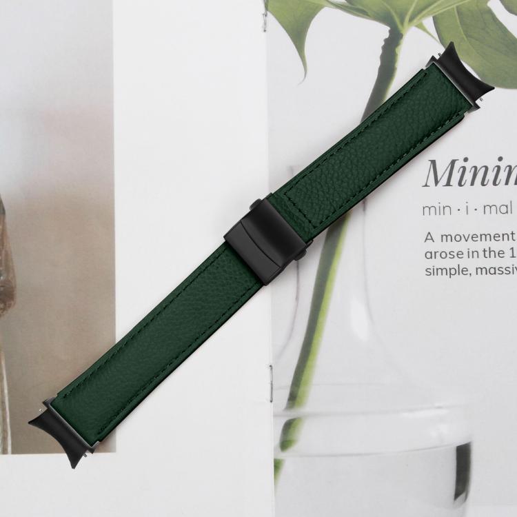 Correa de cuero con hebilla trasera de tortuga negra y textura de lichi de liberación rápida para Samsung Galaxy Watch 7 de 40/44 mm (verde)