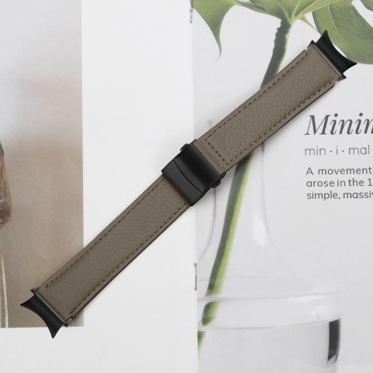 Correa de cuero con hebilla trasera de tortuga negra y textura de lichi para Samsung Galaxy Watch 7 (40/44 mm, gris)