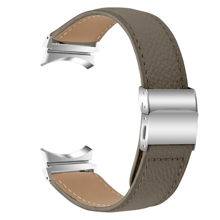 Correa de cuero con hebilla trasera de tortuga plateada con textura de lichi para Samsung Galaxy Watch 7 de 40/44 mm (gris)