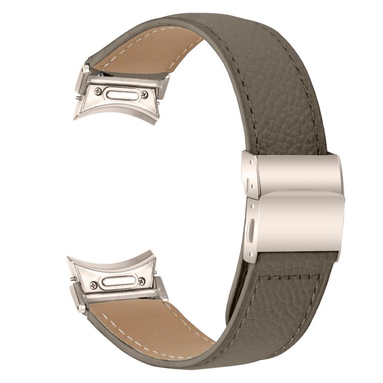 Correa de cuero con hebilla trasera de tortuga y textura de lichi de liberación rápida para Samsung Galaxy Watch 7 (40/44 mm, gris)