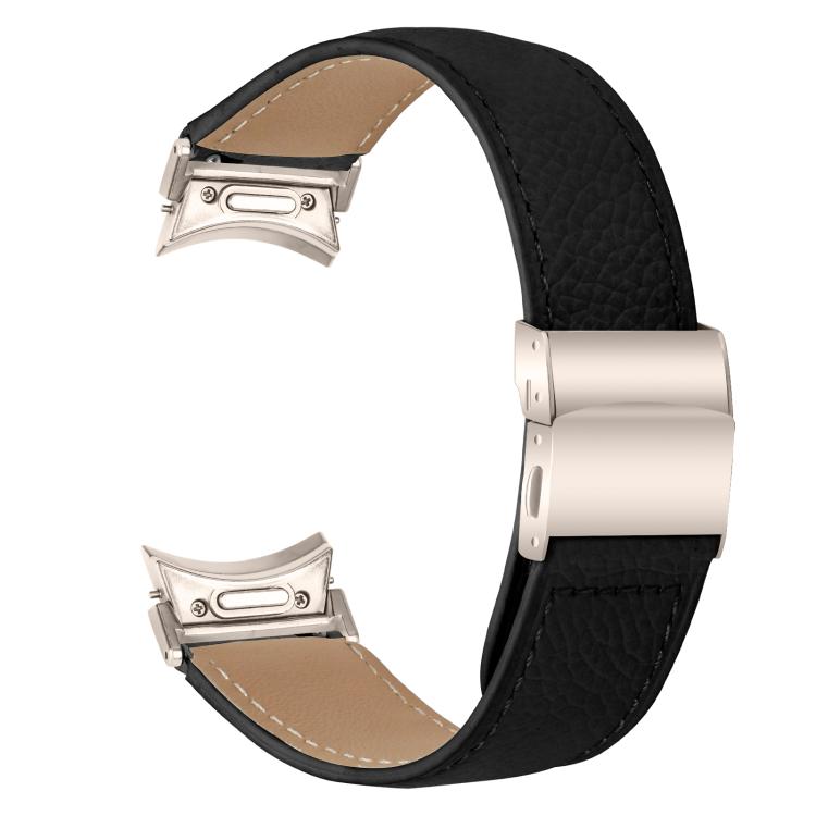 Correa de cuero con hebilla trasera de tortuga y textura de lichi de liberación rápida para Samsung Galaxy Watch 7 (40/44 mm) (negro)
