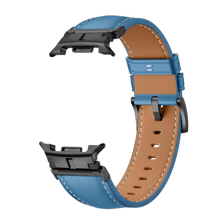 Correa de cuero genuino con conector de cabeza de metal clásico para Samsung Galaxy Watch8/Watch8 (azul y negro)