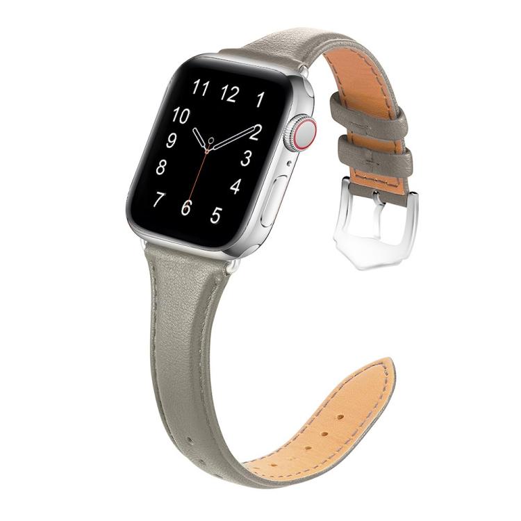Correa de cuero genuino con hebilla pequeña para Apple Watch de 42 mm, 41 mm, 40 mm y 38 mm (gris)