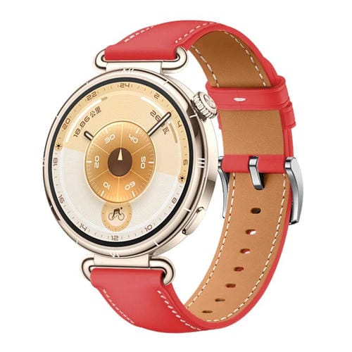 Correa de cuero genuino con hebilla plateada para Huawei Watch GT 6 de 41 mm (roja)