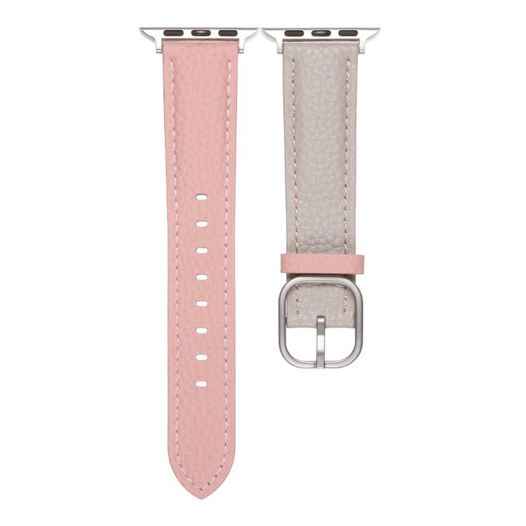 Correa de cuero genuino con textura de lichi y hebilla cuadrada para Apple Watch de 42 mm, 41 mm, 40 mm y 38 mm (gris trinchera y rosa)