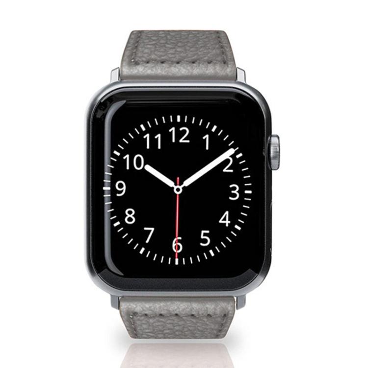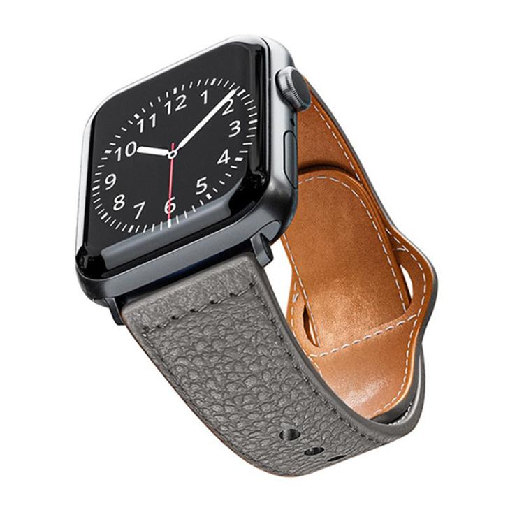 Correa de cuero genuino Litchi con hebilla inversa para Apple Watch de 46 mm, 49 mm, 45 mm y 44 mm (gris)