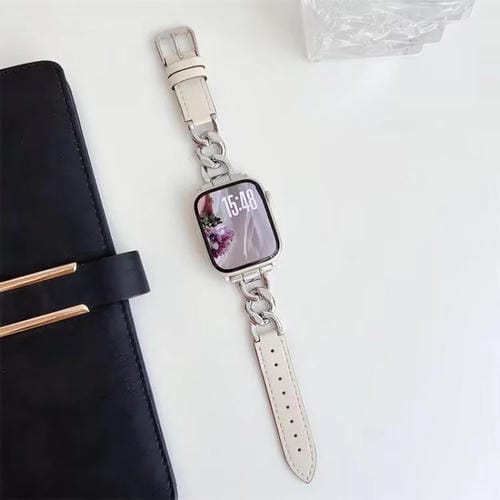 Correa de cuero híbrido de metal y cadena vaquera xDfind para Apple Watch de 42, 44, 45, 46 y 49 mm (plateada)