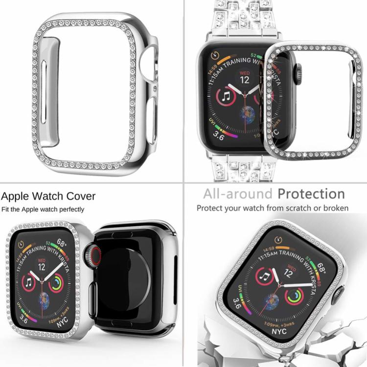 Correa de metal con diamantes brillantes y estuche para Apple Watch Series 10 de 42 mm xDfind (plateada)
