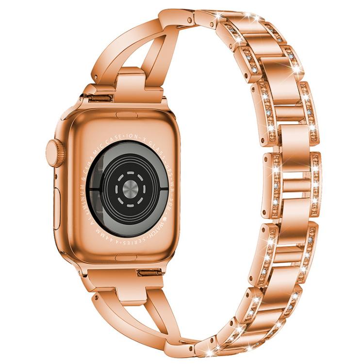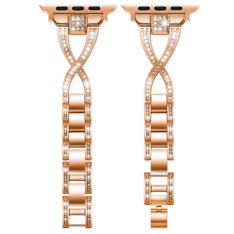 Correa de metal con diamantes de una sola fila en forma de X para Apple Watch 38/40/41/S10 de 42 mm (oro rosa)