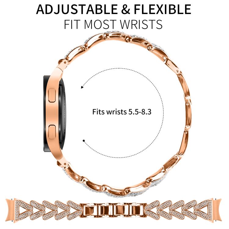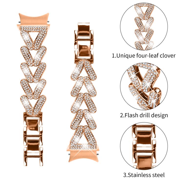 Correa de metal con diamantes pequeños y giro xDfind de 20 mm para Samsung Galaxy Watch FE/7/6/5/4 Classic (oro rosa)