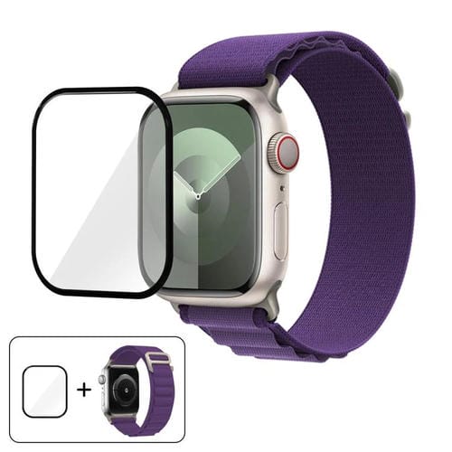 Correa de nailon con hebilla y película curva 3D para Apple Watch Series 41 mm (morado)