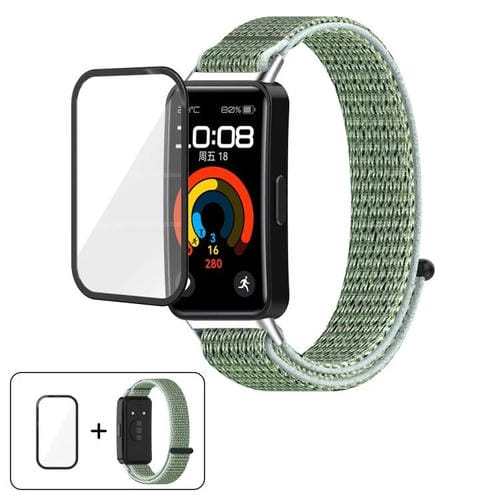 Correa de reloj con cierre de velcro de nailon y película curva 3D para Huawei Band 9/9 NFC (azul océano)