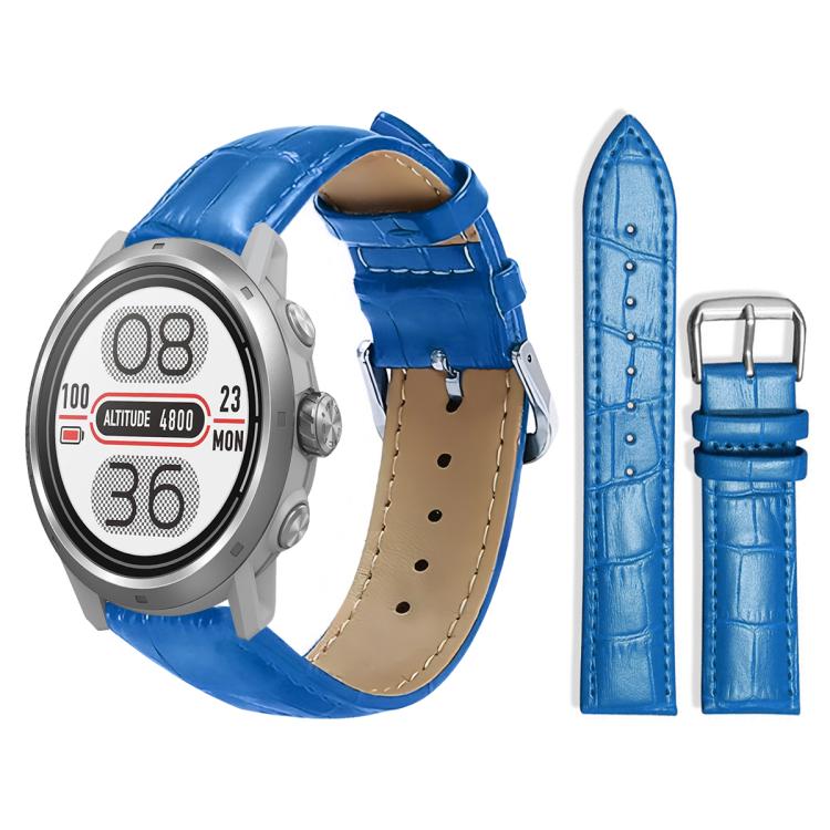 Correa de reloj de cuero con hebilla de pasador y textura de bambú de 20 mm para COROS APEX 2 42 mm / PACE 2 xDfind (azul)